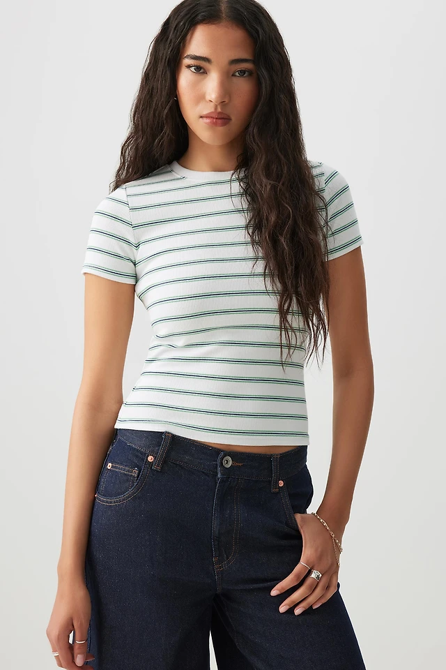 Ardene Ultra Crop Rib T-Shirt in White | Size Large | Cotton/Elastane