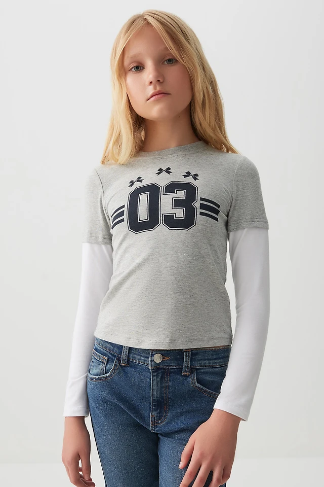 Ardene Ultra Crop Graphic Long Sleeve T-Shirt in Dark Grey | Size | Polyester/Elastane | Eco-Conscious