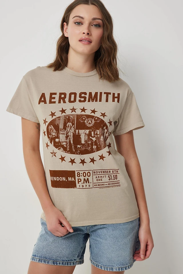Ardene Aerosmith T-Shirt in Beige | Size | 100% Cotton