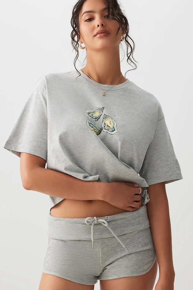 Ardene Oversized Graphic T-Shirt in Light Grey | Size | 100% Cotton