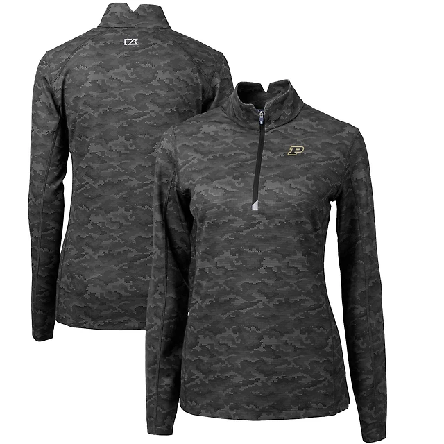 Women's Cutter & Buck Black Purdue Boilermakers Traverse Camo Quarter-Zip Pullover Top