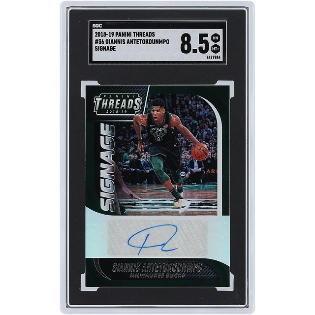 Giannis Antetokounmpo Milwaukee Bucks Autographed 2018-19 Panini Threads Signage #36 SGC Authenticated 8.5 Card