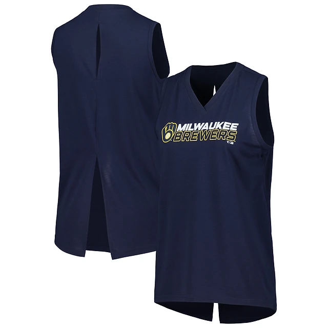 Women's Levelwear Navy Milwaukee Brewers Paisley Chase V-Neck Tank Top