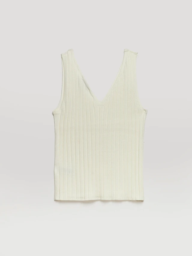Ribbed V-Neck Tank Top Blanc de