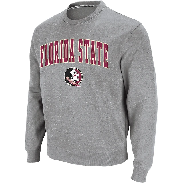 Men's Colosseum Heather Gray Florida State Seminoles Arch & Logo Crew Neck Sweatshirt