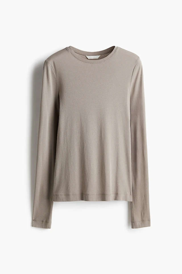 Ardene Rib Long Sleeve T-Shirt in | Size | Cotton/Elastane/Viscose