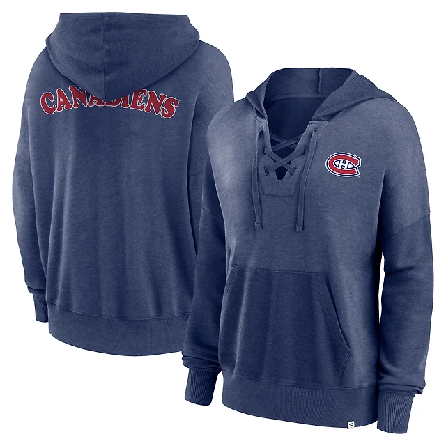 Women's Fanatics Navy Montreal Canadiens Heritage Vintage Lace-Up Pullover Hoodie