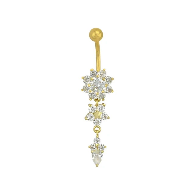 Goldtone CZ Flower Dangle Belly Ring