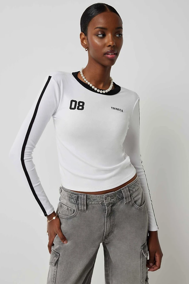 Ardene Tribeca Long Sleeve T-Shirt in White | Size | Elastane/Viscose
