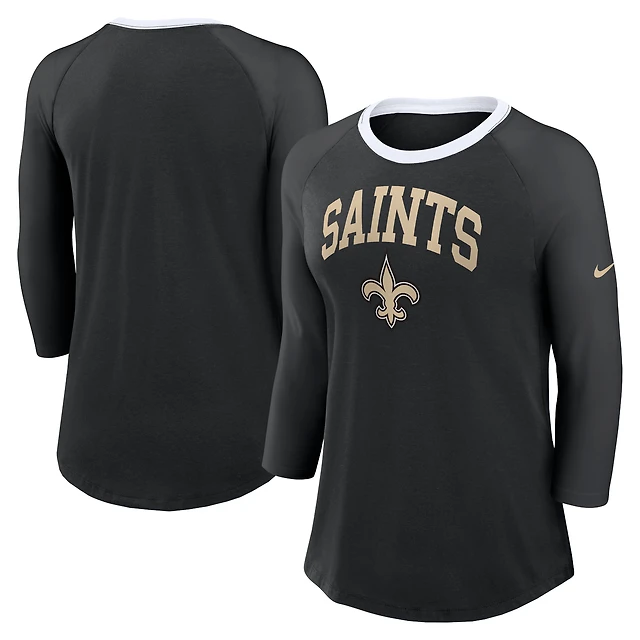 Women's Nike Black New Orleans Saints Raglan 3/4 Sleeve T-Shirt