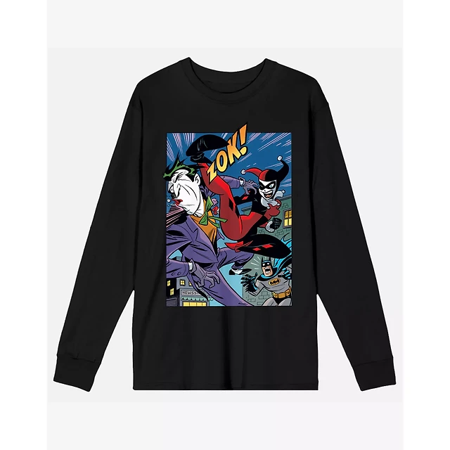 Harley Quinn and Joker Punch Long Sleeve T Shirt - DC Comic Book