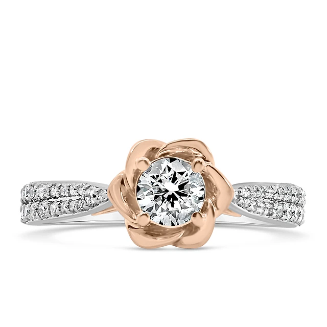 Enchanted Disney Belle Engagement Ring with .75 Carat TW of Diamonds in 14kt White and Rose Gold
