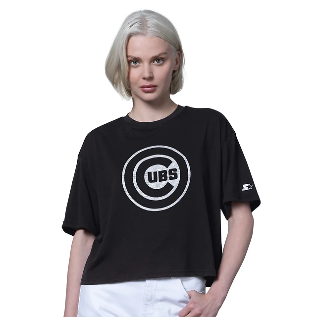 Women's Starter Black New York Mets Holy Grail Boxy Cropped T-Shirt