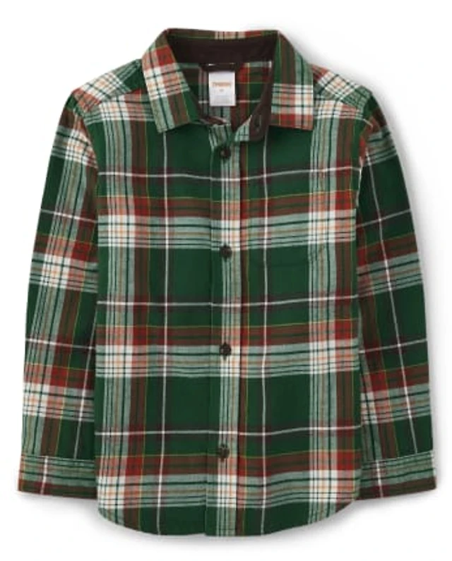 Boys Plaid Button Up Shirt - Autumn Harvest