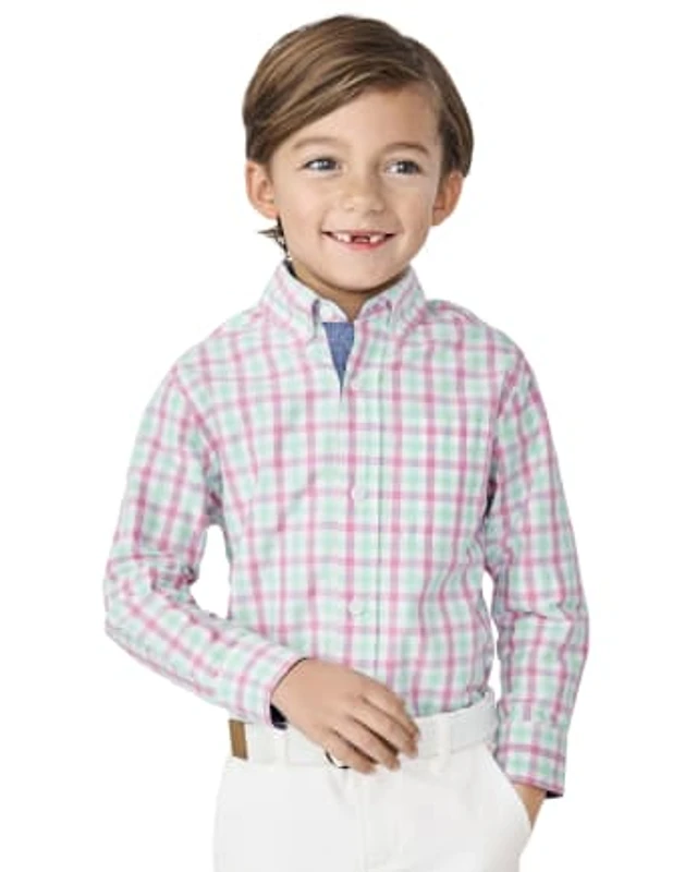 Baby And Toddler Boys Long Sleeve Gingham Poplin Button Up Shirt