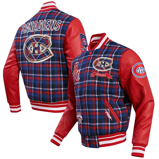 Men's Pro Standard Red/Navy Montreal Canadiens Prep Plaid Wool Full-Snap Varsity Jacket