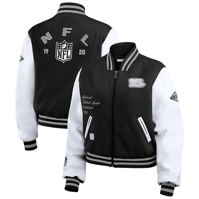 Women's WEAR by Erin Andrews Black/White NFL Varsity Full-Zip Jacket