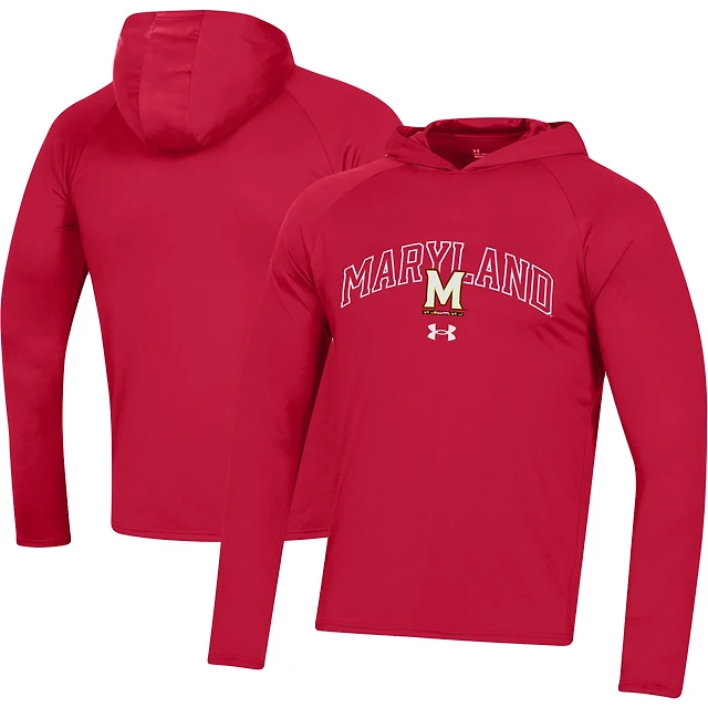 Men's Under Armour Red Maryland Terrapins 2023 Sideline Tech Hooded Raglan Long Sleeve T-Shirt
