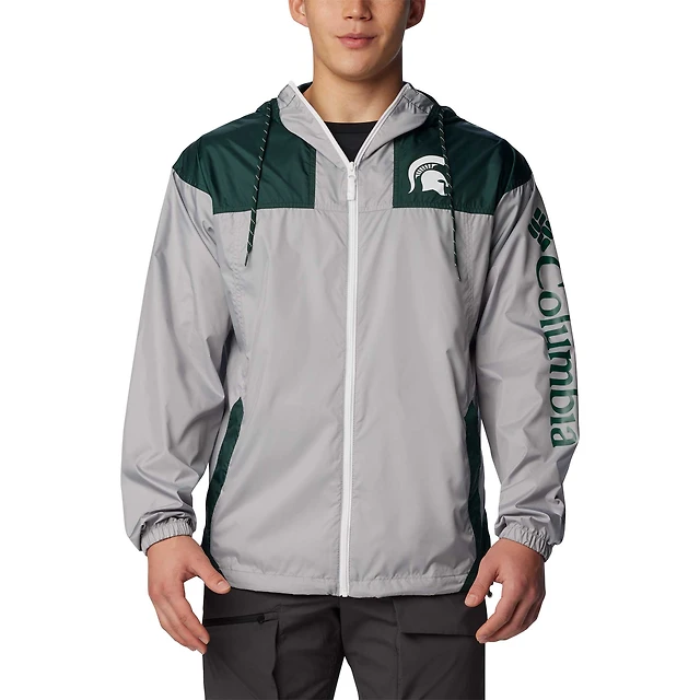Men's Columbia Gray Michigan State Spartans Flash Challenger Omni-Shade Full-Zip Windbreaker Hoodie Jacket