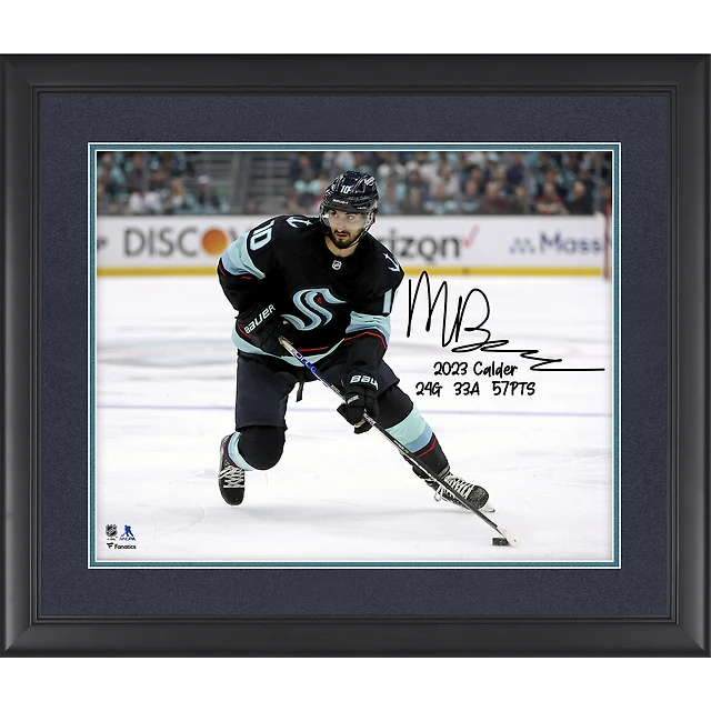 Matty Beniers Seattle Kraken Autographed Framed 16" x 20" Skating with Puck Photograph with Multiple Inscriptions - Limited Edition of 23