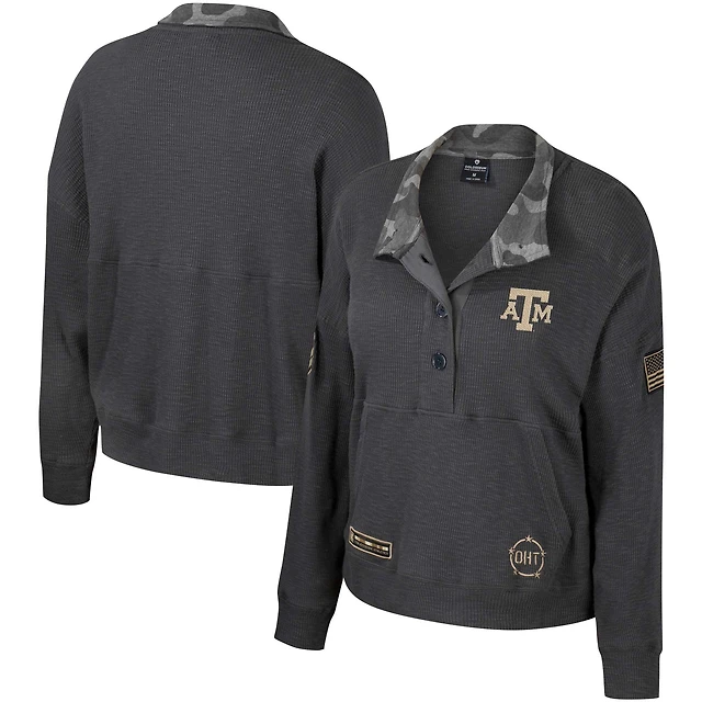 Women's Colosseum Heather Charcoal Texas A&M Aggies OHT Military Appreciation Payback Henley Thermal Sweatshirt