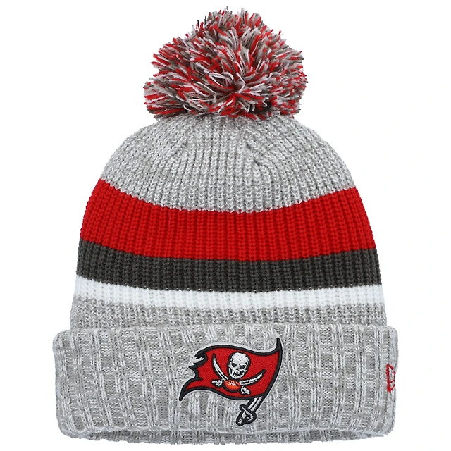 Youth New Era Heather Gray Tampa Bay Buccaneers Cuffed Knit Hat with Pom