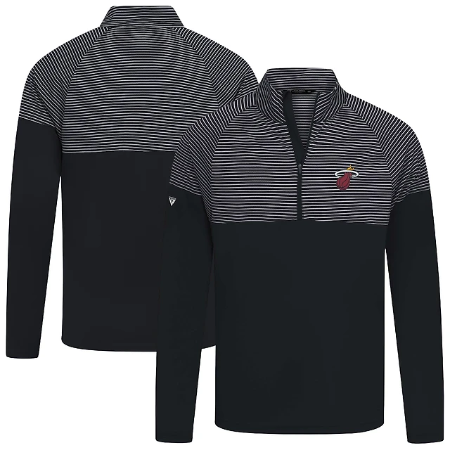 Women's Levelwear Black Miami Heat Classic Stripes Quarter-Zip Top