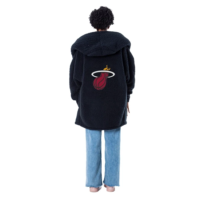 Unisex the Best Lounger World By Jill Martin Black Miami Heat Oversized Open-Front Hoodie Sweater
