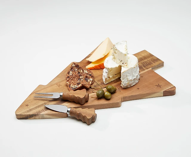 Festive Pine Serving Board with 2 Cheese Knives, 40 cm