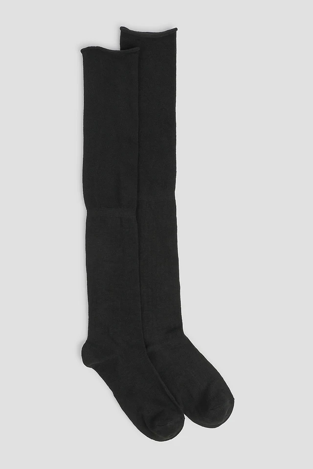 Ardene Sheer Rib Cuff Over-the-Knee Socks in Black | Elastane/Polyamide