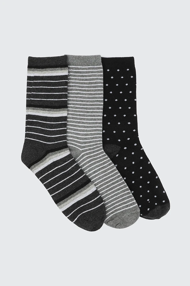 Ardene 3-Pack Bear Embroidery Demi Crew Socks in Grey | Polyester/Spandex