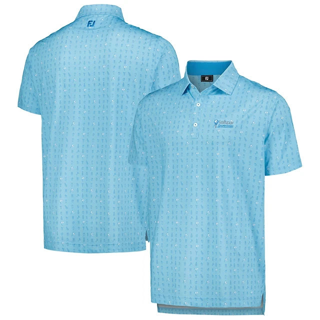 Men's FootJoy Light Blue THE PLAYERS ProDry Checker Print Lisle Polo