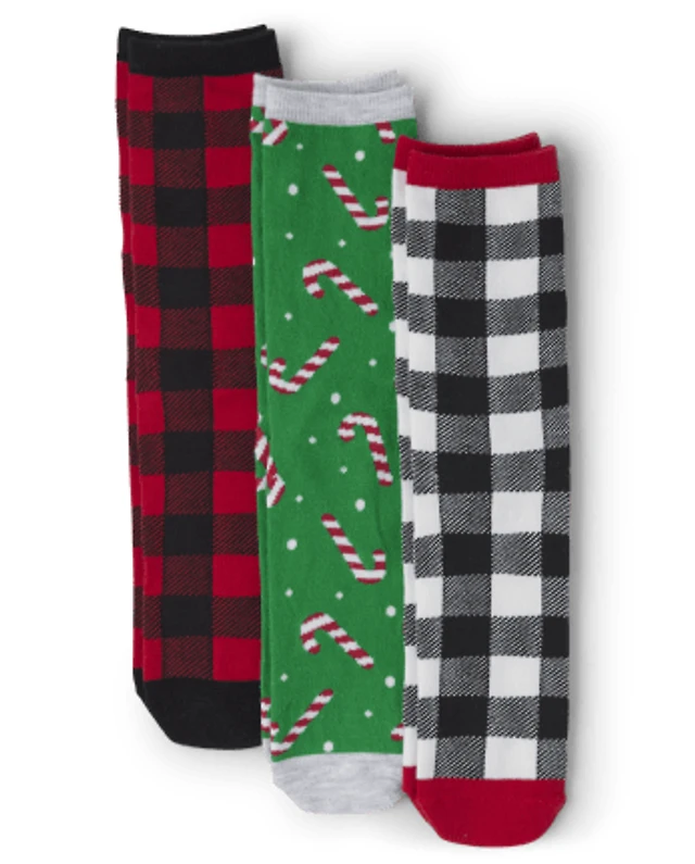 Adult Matching Family Santa Crew Socks 3-Pack