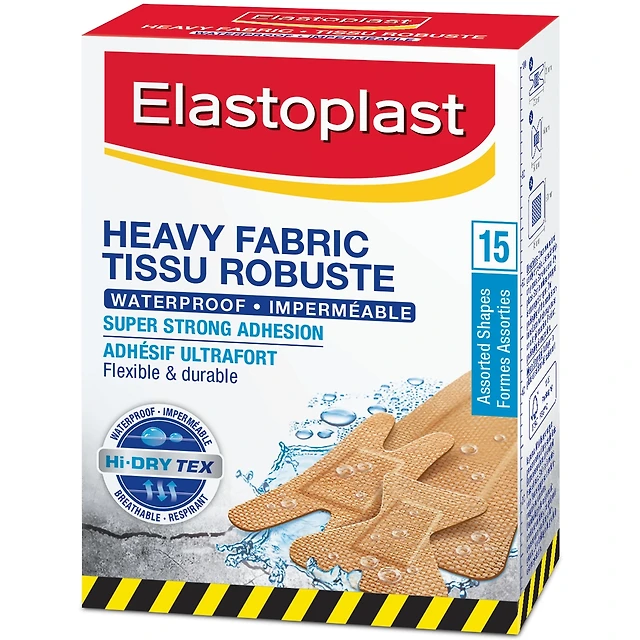 ELASTOPLAST Heavy Fabric Waterproof Adhesive Bandages, 15 Assorted Shapes