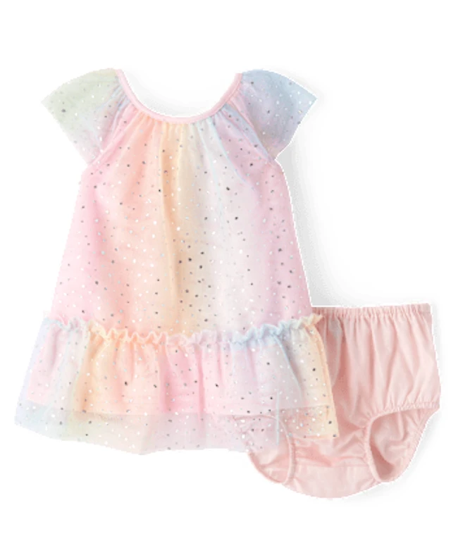 Toddler Girls Rainbow Shimmer Mesh Tiered Dress