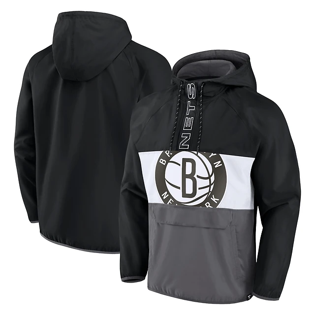 Men's Fanatics Black/Gray Brooklyn Nets Anorak Flagrant Foul Color-Block Raglan Hoodie Half-Zip Jacket
