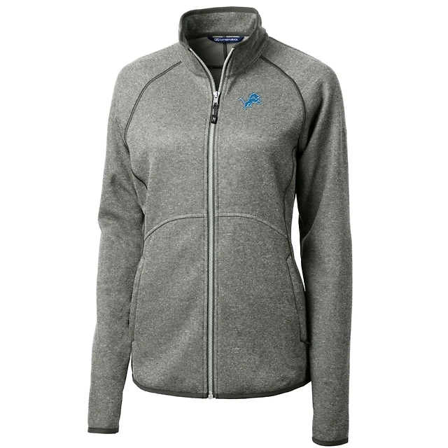 Women's Cutter & Buck Heathered Gray Detroit Lions Mainsail Sweater-Knit Full-Zip Jacket