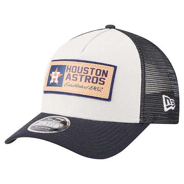 Men's New Era Stone/Navy Boston Red Sox Text A-Frame Trucker 9FORTY Hat