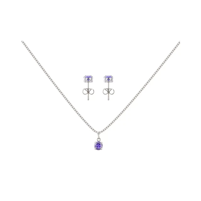 February Birthstone Necklace and Stud Earring Set