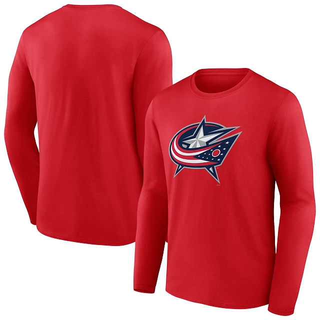Men's Red Columbus Blue Jackets Primary Logo Long Sleeve T-Shirt