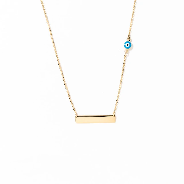 16″-18″ Evil Eye Necklace with Turquoise Enamel in 10kt Yellow Gold