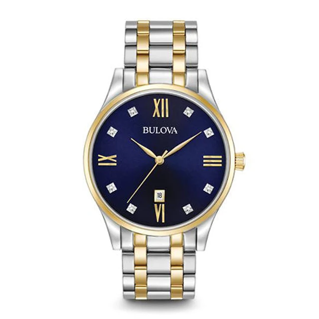 Bulova Mens Marine Star Watch In Rose Gold and Blue | 98A227
