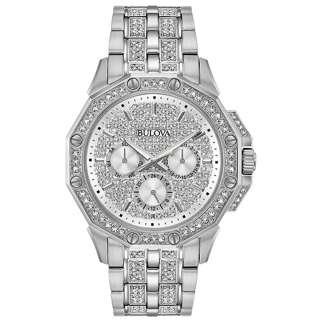 Bulova Men's Crystal Watch In Black Tone Stainless Steel | 98C134