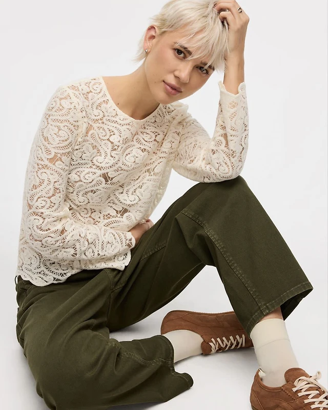 Short-Sleeve Crew-Neck Mix-Media Blouse