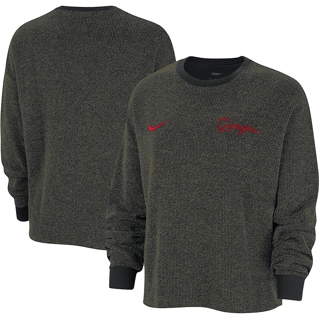 Women's Nike Black Georgia Bulldogs Yoga Script Pullover Sweatshirt