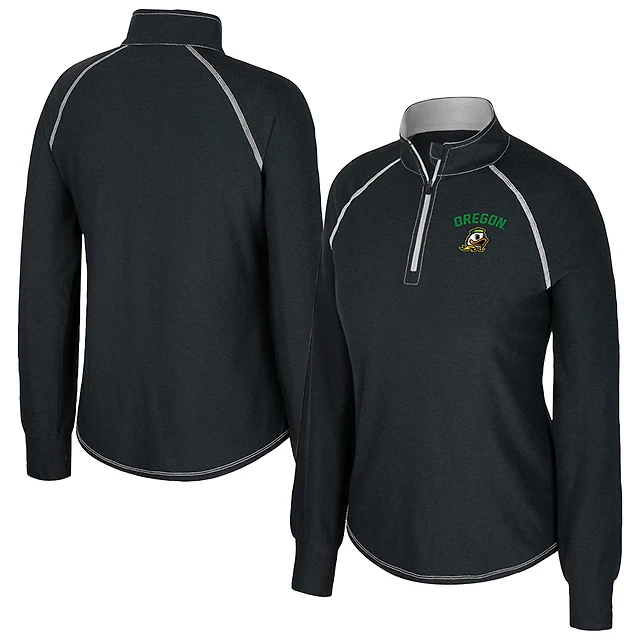 Women's Colosseum Black Oregon Ducks Bikram Raglan Quarter-Zip Top
