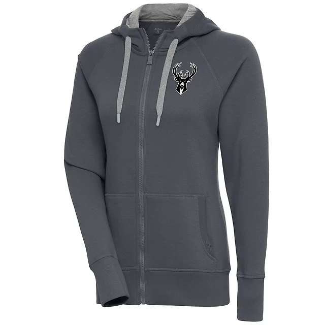 Women's Antigua Charcoal Milwaukee Bucks Brushed Metallic Victory Full-Zip Hoodie