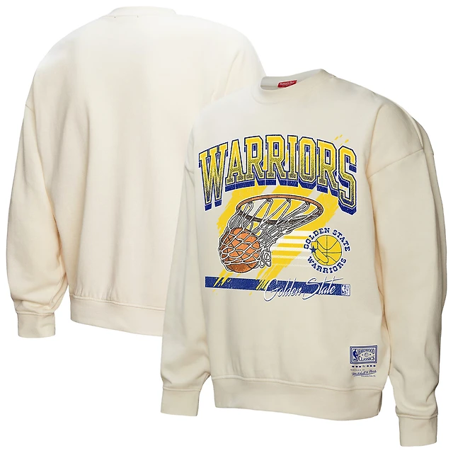 Women's Mitchell & Ness Cream Golden State Warriors Brush Bucket Pullover Sweatshirt