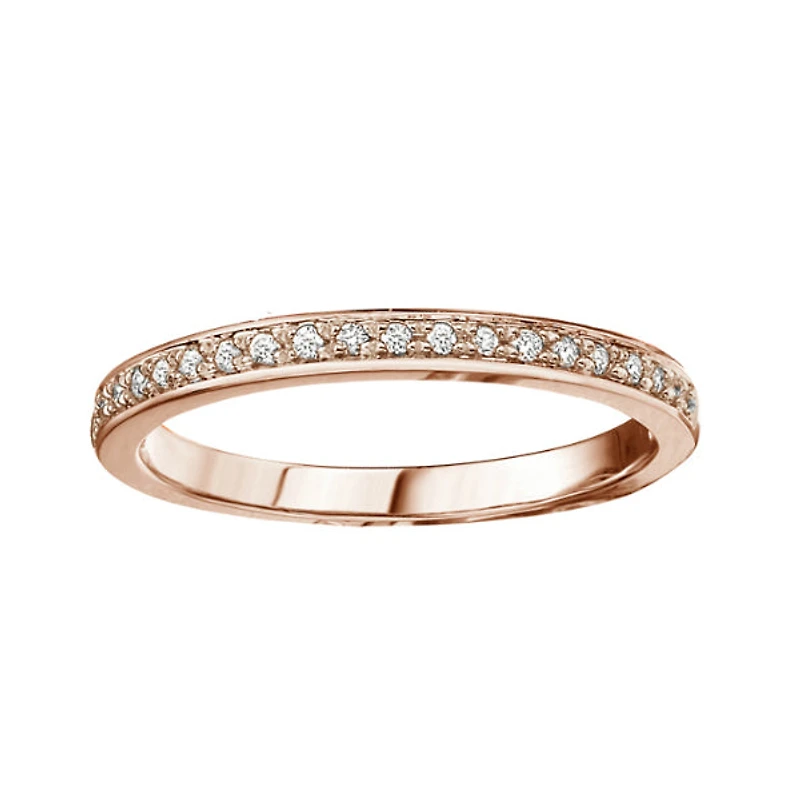 Ladies 10k rose gold and 0.10ctw diamond 'chi chi' stackable ring. Band is 2mm wide.   01R435XD
