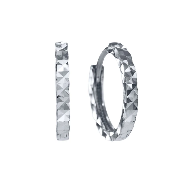 10K White Gold Hoop Earrings With Diamond Cut Pattern